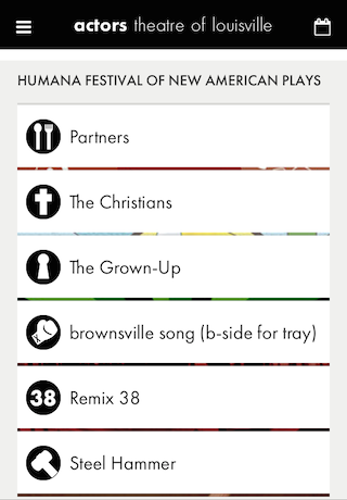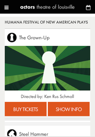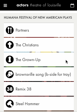 The Actors Theatre mobile layout makes it as easy as possible for someone to purchase tickets for what’s playing today. Two shows are displayed side by side on the mobile site, with a left-right swipe revealing the second show on smaller displays. To make it easier for attendees to plan their visits, we needed to display all 7 shows regardless of whether or not they’re on stage today. Swiping through all of those shows was a bit of a chore and the majority of the festival’s lineup gets hidden off screen.