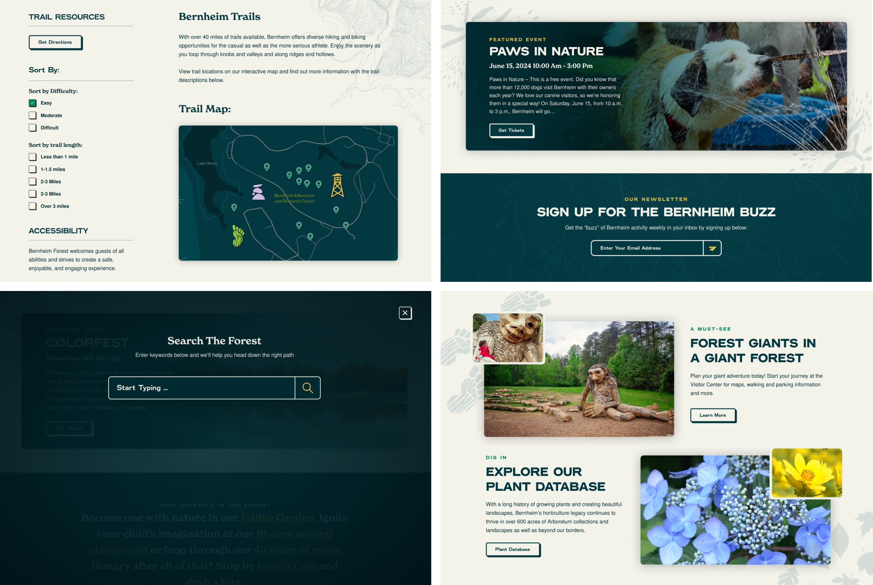 Goal number 1 was a unified design experience that focused on our users' needs and built a familiar, trustworthy, brand-forward platform. However, we couldn’t lose sight of Bernheim's quirkiness, personality, and unique nature. The site had to present content thoughtfully, tell the correct story, and encourage exploration—but it also had to delight.
