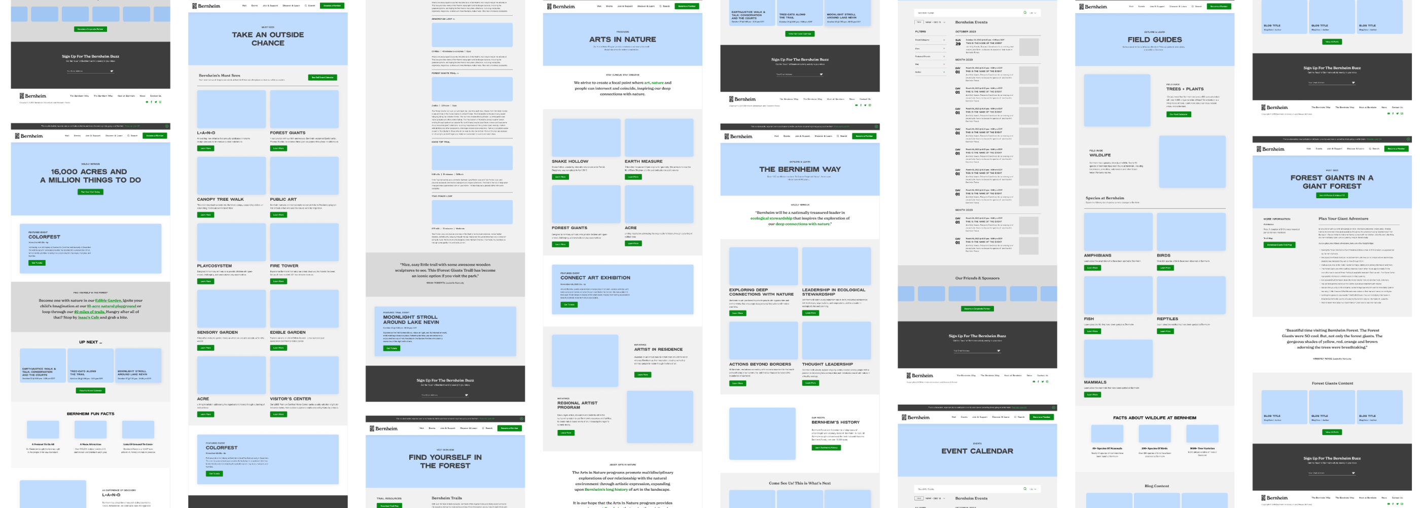Equipped with a fresh new look and design language, our next challenge was to design and develop a website that captured the same creativity and energy of the updated brand while prioritizing a top-notch user experience. Our Goal: To create a digital experience that would inspire and encourage visitors to close their browsers and visit Bernheim Forest.