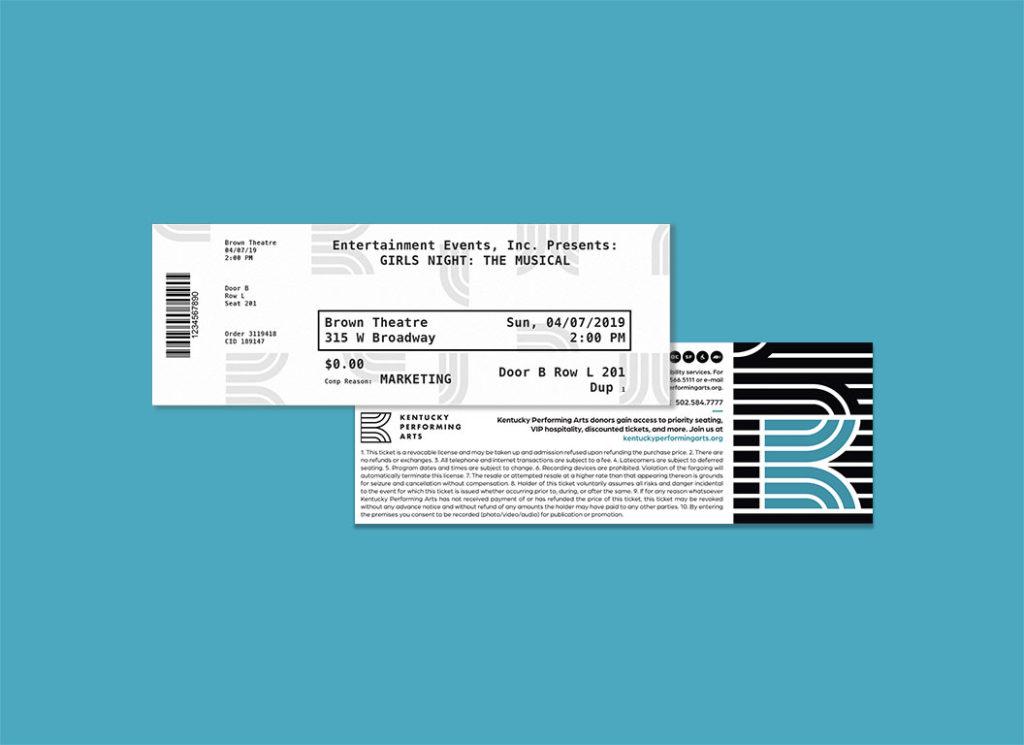 After careful consideration, Kentucky Performing Arts was chosen. The new name serves as a holistic core identity under which any number of genres and venues can be represented. A "branded house" approach was taken, giving each venue an identity that’s consistent with the KPA parent brand while having its own unique expression.