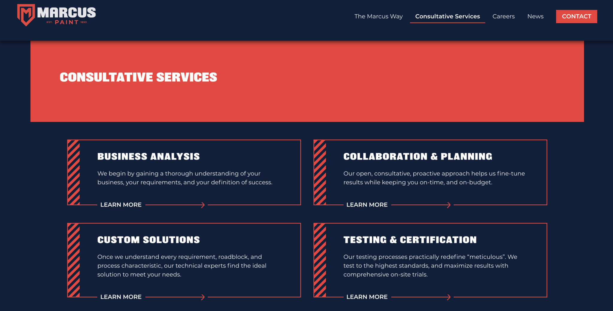 Through our branding process, we learned that in its history, Marcus had shifted from producing domestic house paints to industrial coatings. These coatings are crucial to the safety and performance of a wide variety of materials and machines.